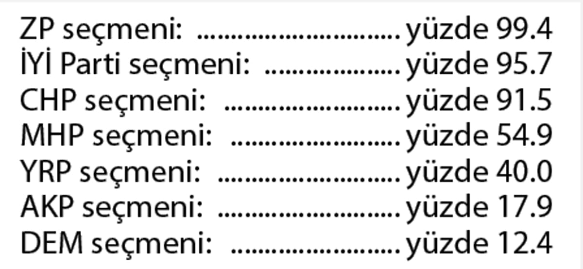 Mansur Yavaş ile Cumhurbaşkanı Recep Tayyip Erdoğan’ın karşı karşıya olduğu senaryoda ankette Yavaş yüzde 56.3, Erdoğan ise yüzde 43.7 oranında oy aldı. Parti bazında dağılım ise şöyle: